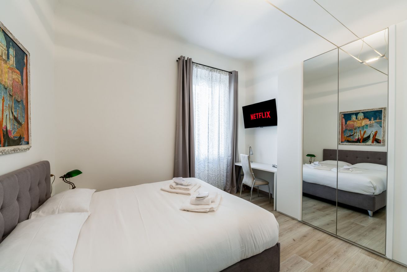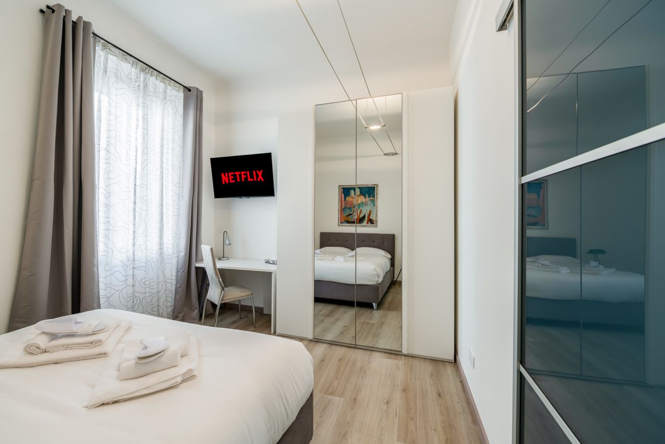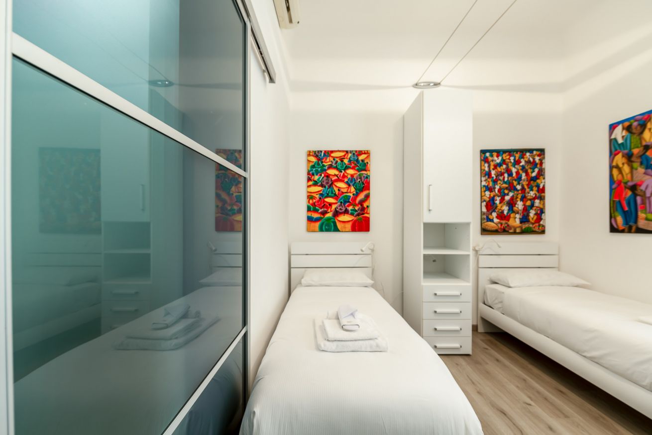 Only 20 minutes away from the center of Milan, the apartment consists of a double bedroom and a twin bedroom with two single beds.