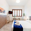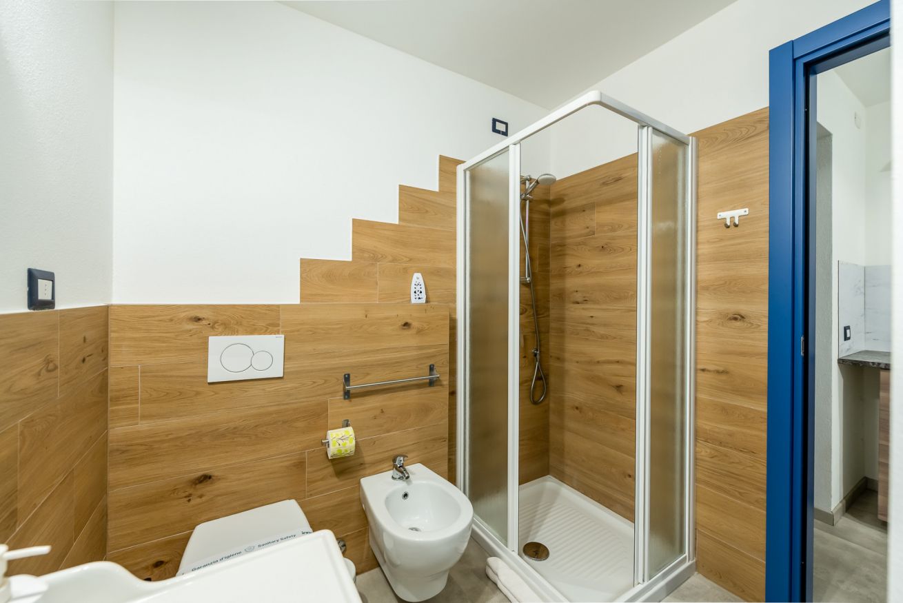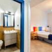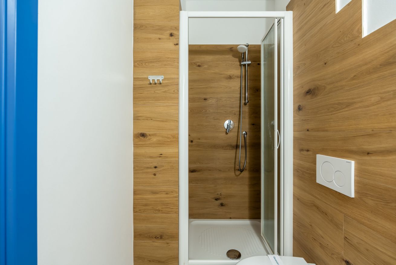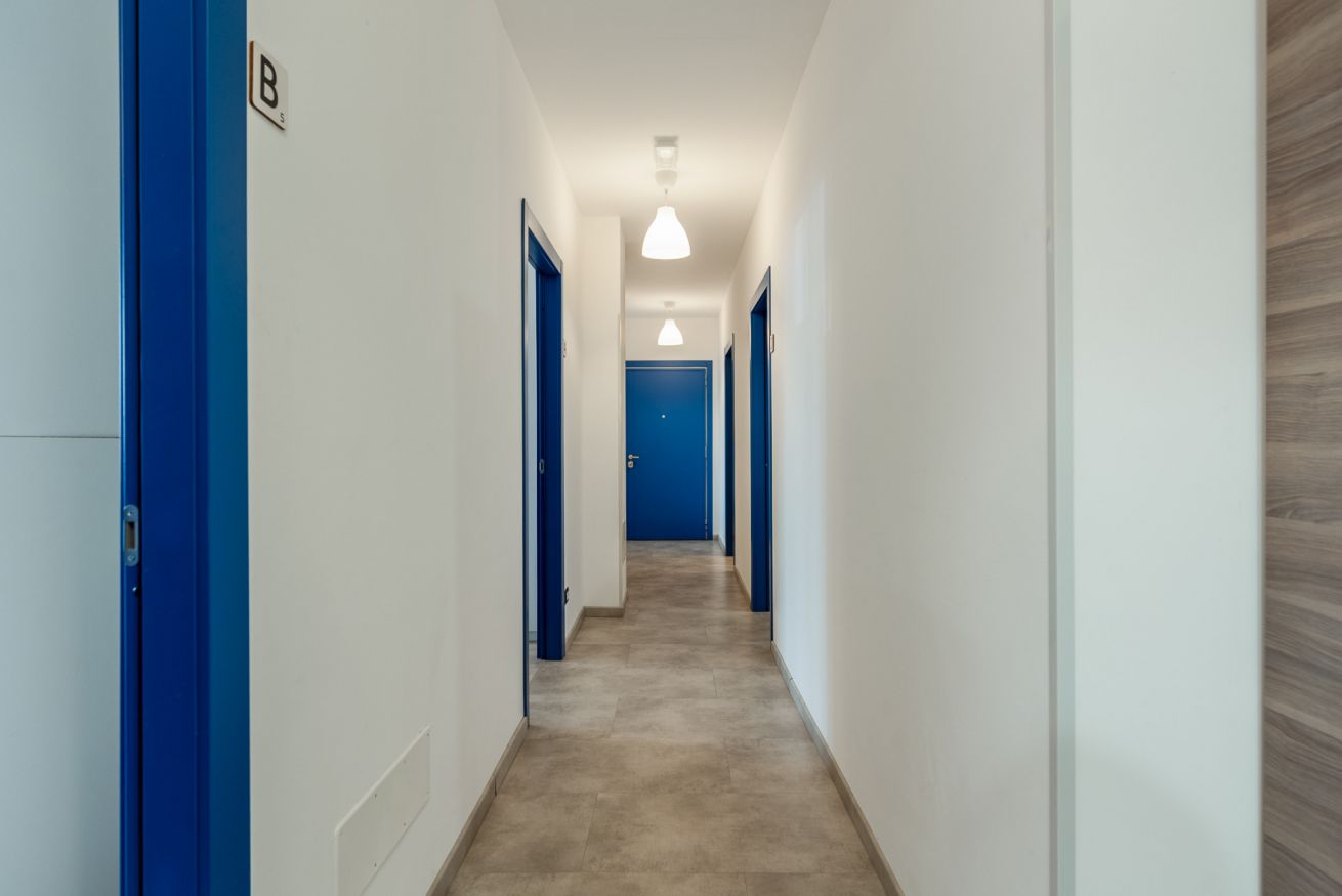 The shared living area is cozy and ideal for socializing: a large living room with sofas and a dining area, as well as a fully equipped shared kitchen, perfect for preparing meals together.