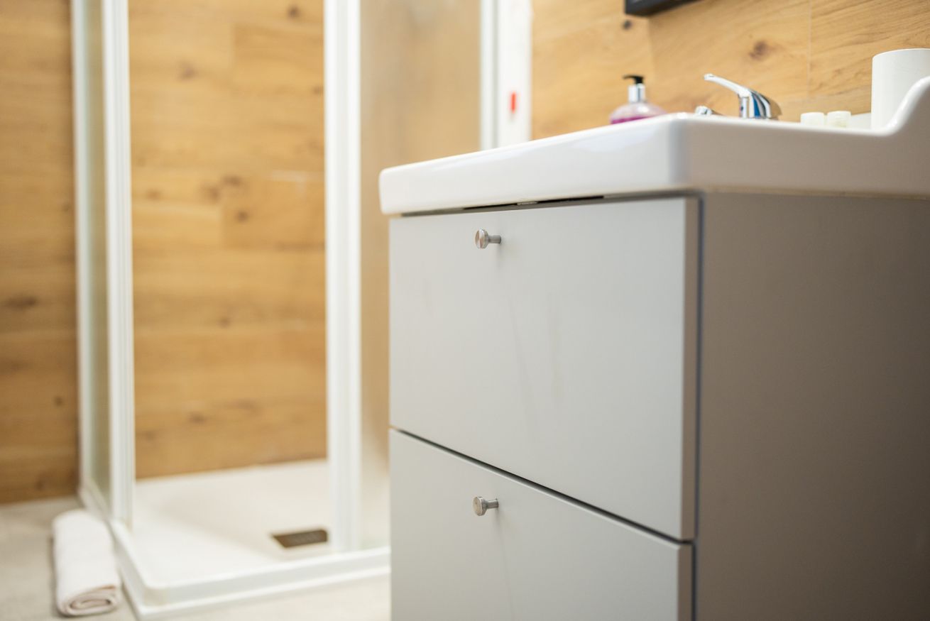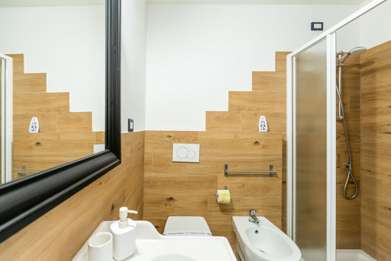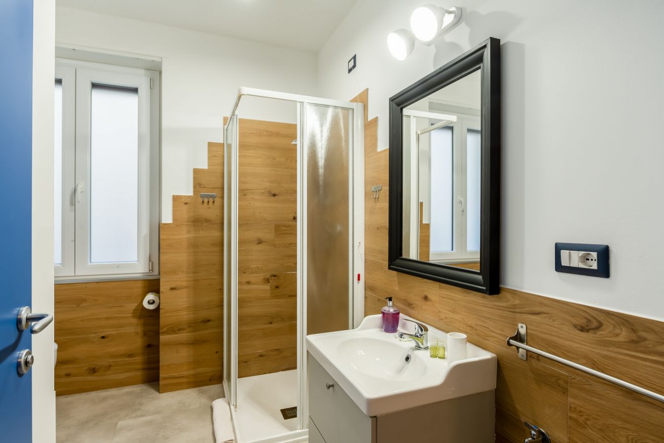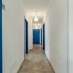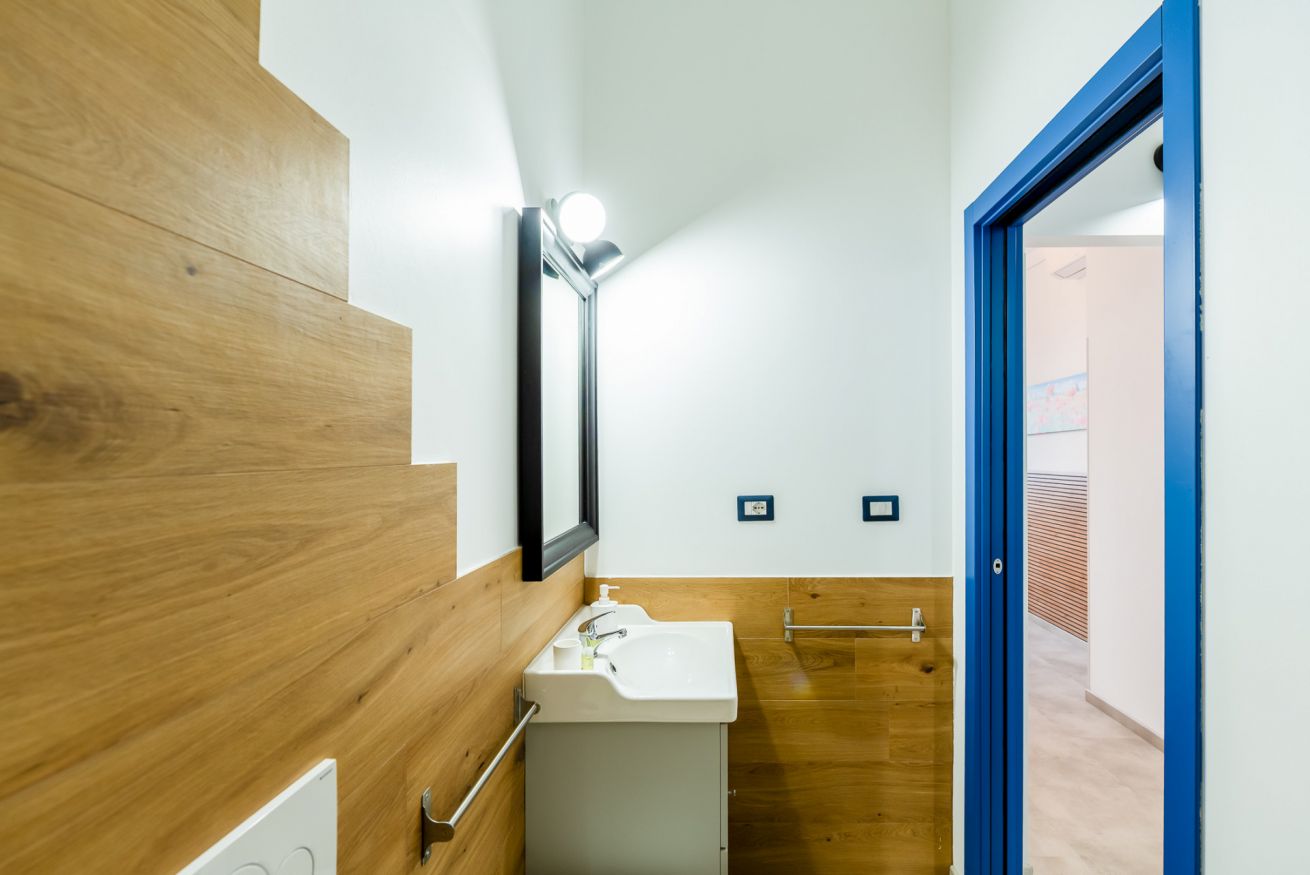 The shared living area is cozy and ideal for socializing: a large living room with sofas and a dining area, as well as a fully equipped shared kitchen, perfect for preparing meals together.