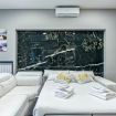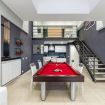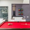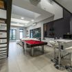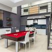 Il soggiorno è il cuore pulsante della casa, con un elegante tavolo da pranzo trasformabile in biliardo per momenti di svago. La grande smart TV da 60 pollici ti permetterà di rilassarti, mentre il comodo divano letto angolare è perfetto per accogliere ulteriori ospiti.