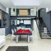 La camera da letto al piano di sopra, aggiunge un tocco di originalità, offrendo privacy e relax.